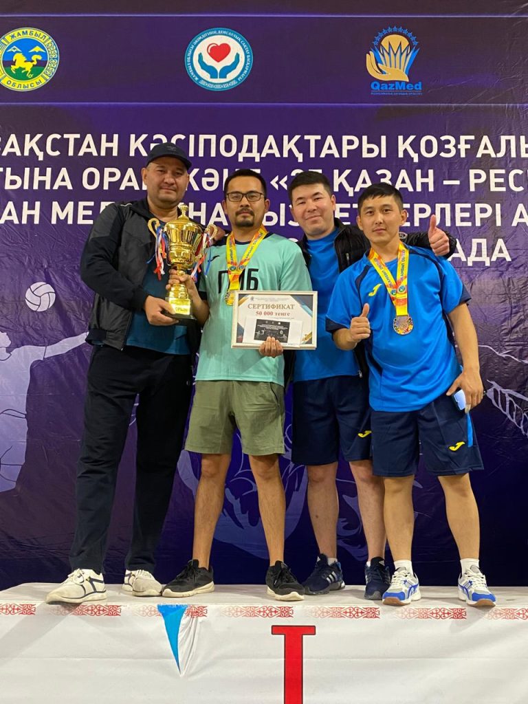 11-қазан күні “QazMed” кәсіподағы Жамбыл облысы филиалының ұйымдастыруымен медициналық ұйымдар арасында облыстық спартакиада өтті. Аталған іс-шарада қалалық көпбейінді аурухана КД орталығы мен ЖИТС орталығынан жасақталған “ҰЛЫ ДАЛА” командасы жеңіске жетіп командалық 1-ші орынды ұтып алды. Бас дәрігерлер арасында өткен “Дартс” спорт сайысынан мекемеміздің бас дәрігері Хамит Саттаркулович Мурзакасымов 2-ші орынды иеленді. Мекемеміздің намысын қорғап, жеңіс жолына бар күш-жігерлерін жұмсаған әріптестерімізге шексіз алғысымызды білдіреміз!!!
